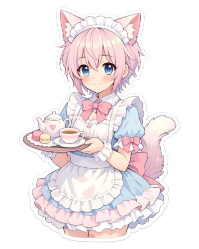 AI Generated Cartoon Maid Cat Femboy PNG Sticker Set – Kawaii Pack (10pcs)