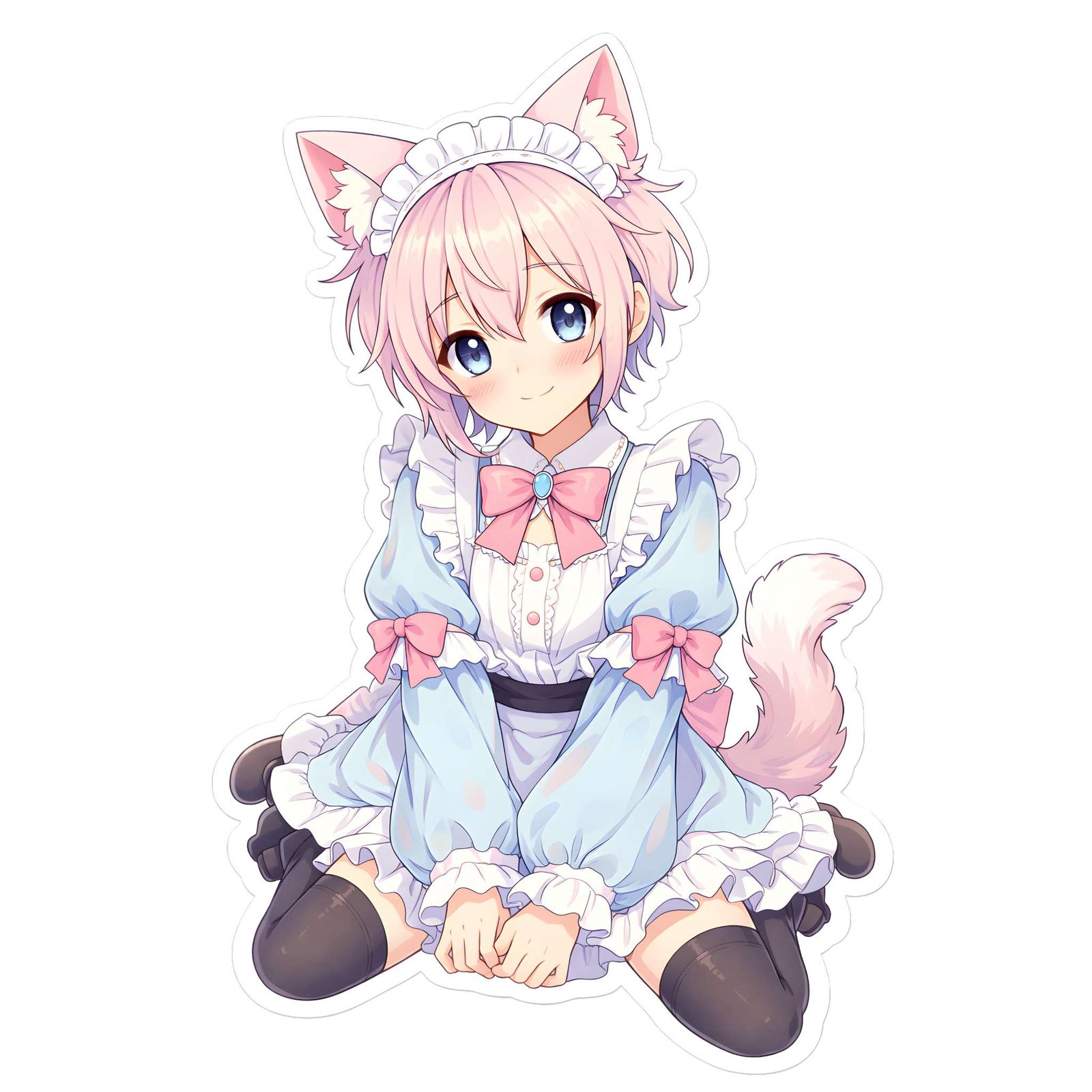 AI Generated Cartoon Maid Cat Femboy PNG Sticker Set – Kawaii Pack (10pcs)