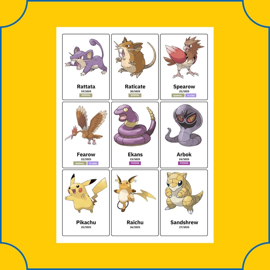 Pokémon National Pokédex Binder Placeholders 1025 Printable Set