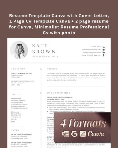 Original price was: $3.99.$1.99Current price is: $1.99.Minimalist Canva Resume Template with Cover Letter – 1 to 3 Pages